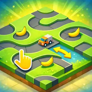 At first glance, it feels like a simple route puzzle—rotate a few streets, grab bananas, done. That assumption didn’t last long. The core mechanic revolves around redirecting street tiles while the car keeps moving, which means your decisions are always slightly delayed in effect. There’s roughly a 0.2–0.3 second window between switching a road and the car actually committing to that path, and that tiny delay ends up being everything.